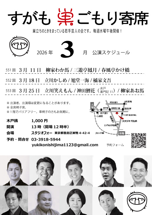 - 3月18日(水)13時開演 第552回 すがも巣ごもり寄席