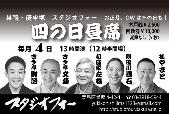 - 4月29日(水)13時開演 第558回 すがも巣ごもり寄席