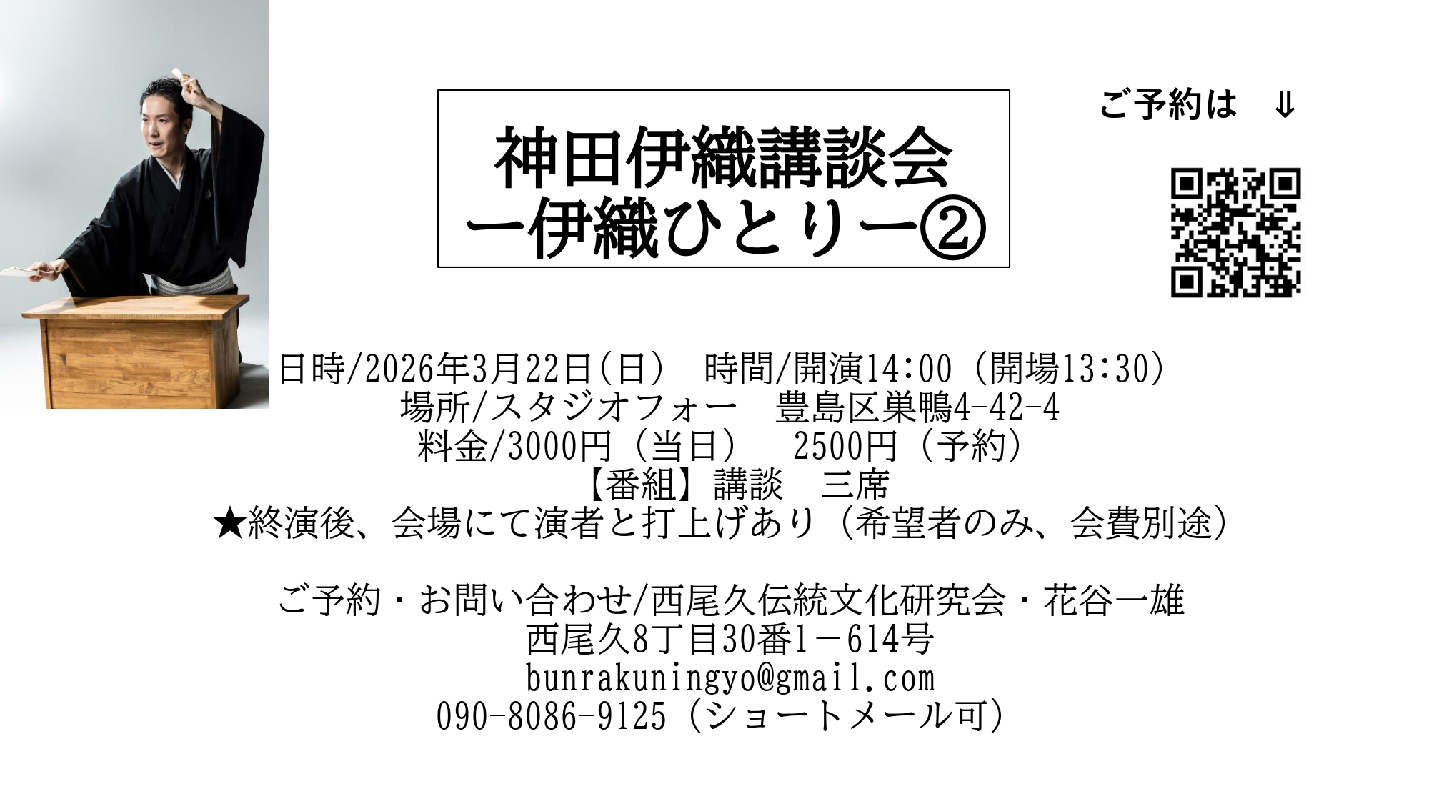 - 3月22日(日)14時開演 神田伊織講談会 -伊織ひとり②-