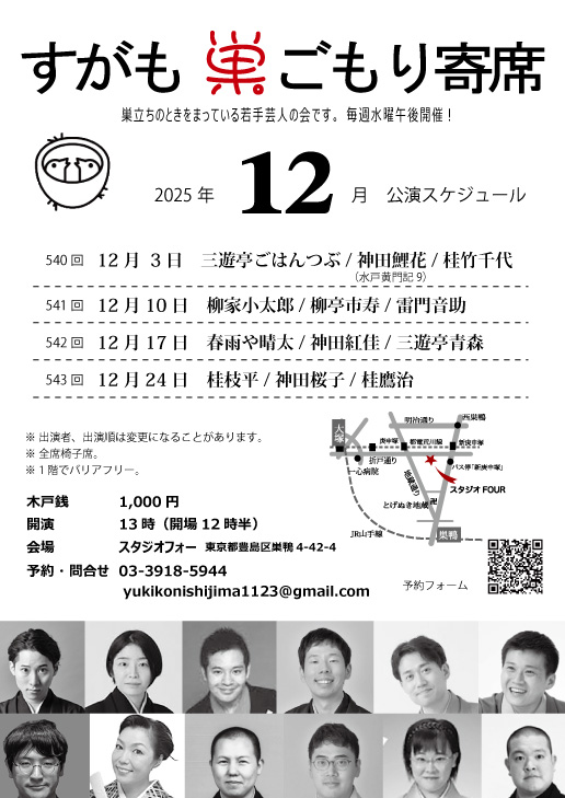 - 12月10日(水)13時開演 第541回 すがも巣ごもり寄席