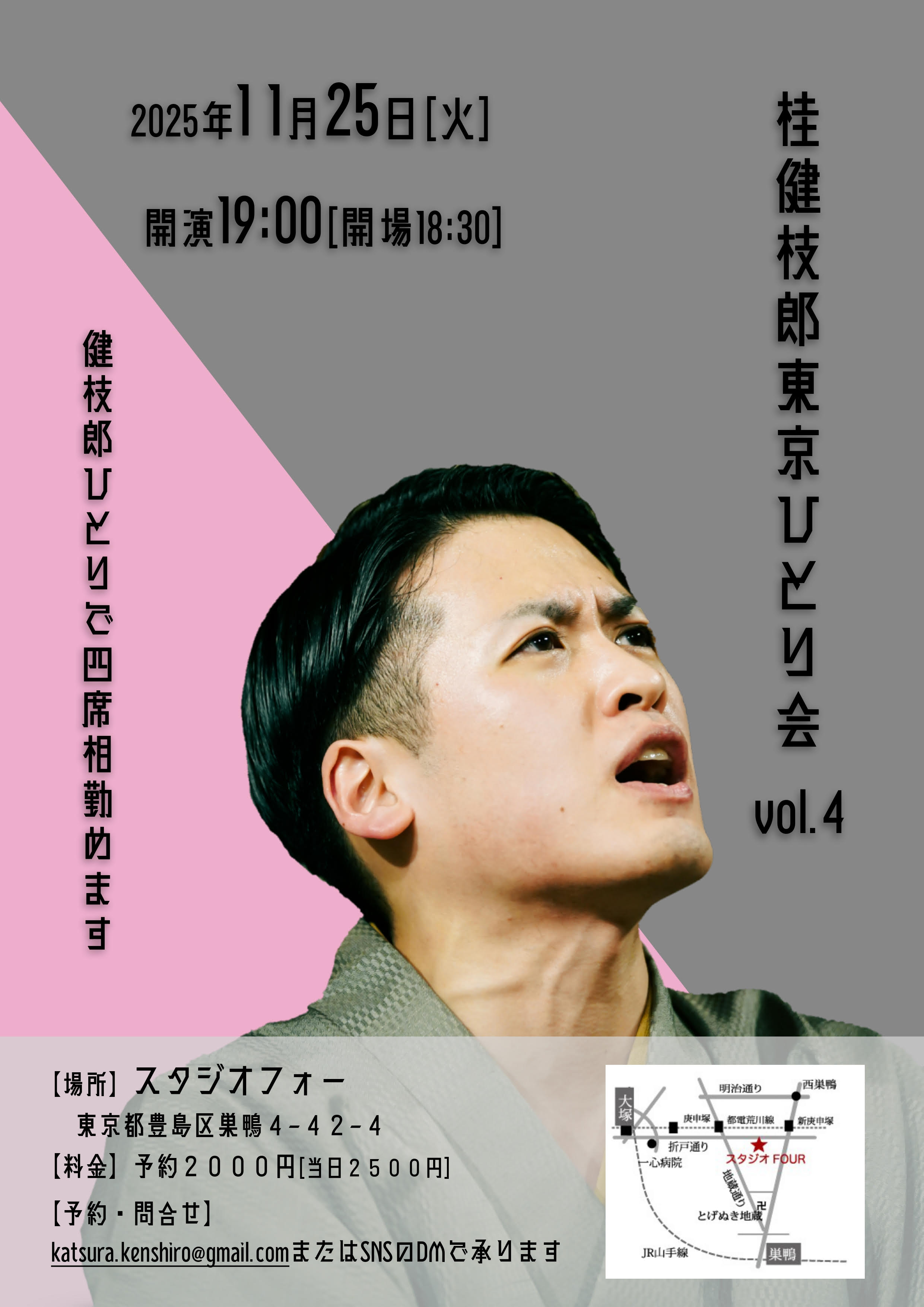- 11月25日(火)19時開演 桂健枝郎 東京ひとり会vol.4