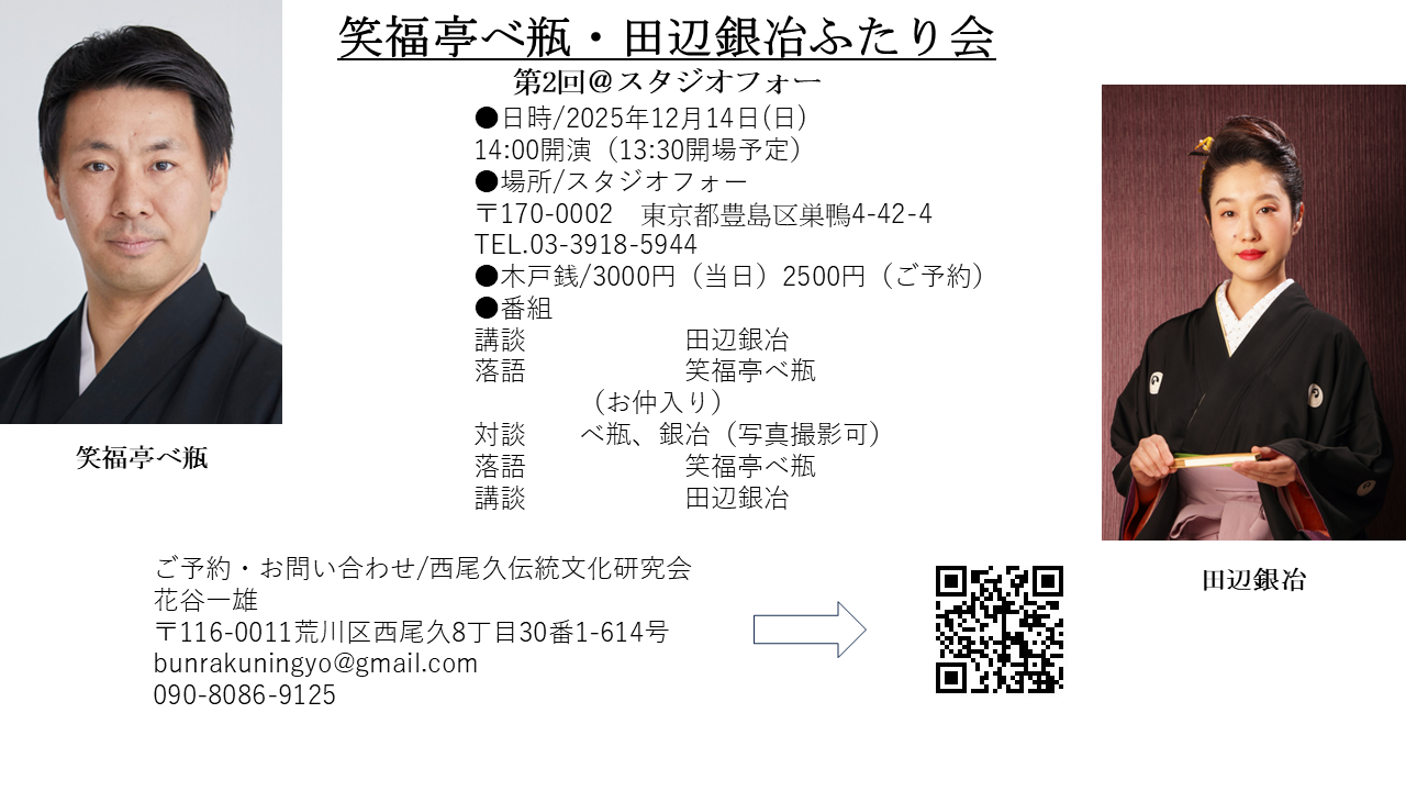 - 12月14日(金)14時開演 笑福亭べ瓶・田辺銀冶ふたり会